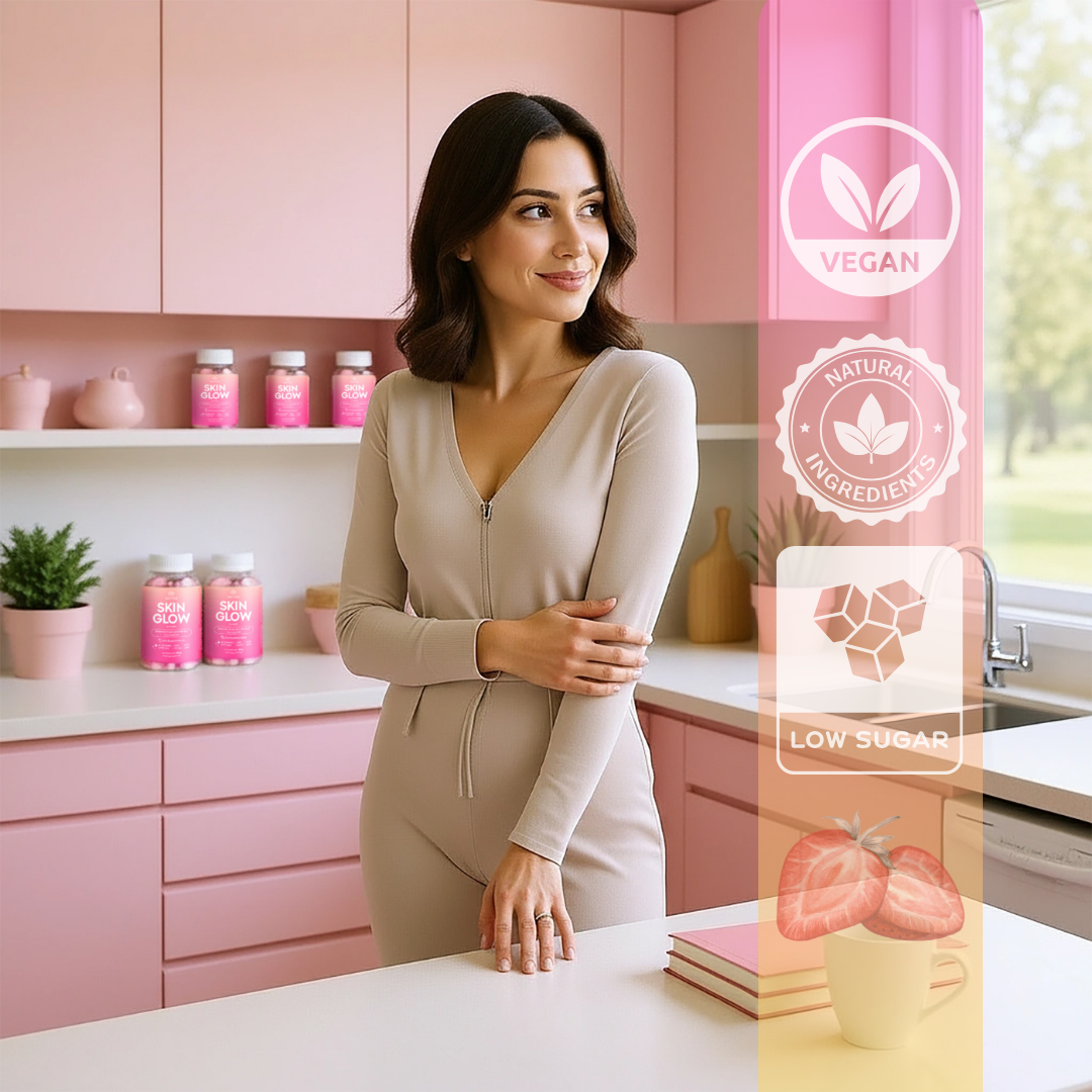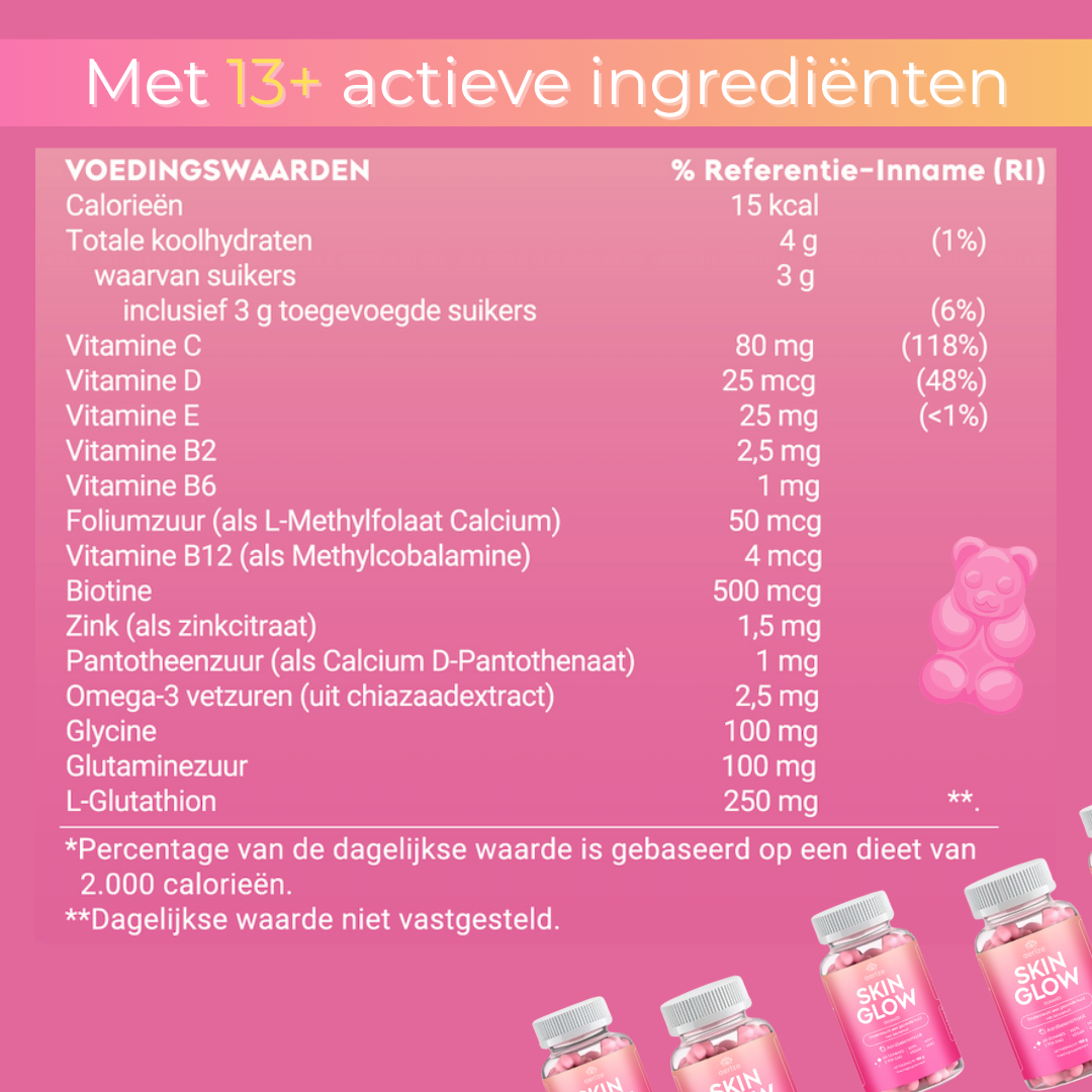 Een gezonde, frisse huid begint van binnenuit. Aerize Skin Glow Gummies bevatten meer dan 13 zorgvuldig gekozen ingrediënten die elkaar perfect aanvullen. Vitamines C, D, E, B2, B6, foliumzuur en B12 vormen samen een uitgebalanceerde basis, aangevuld met biotine, zink en pantotheenzuur – vaak gebruikt in beauty- en huidverzorgingsroutines.
