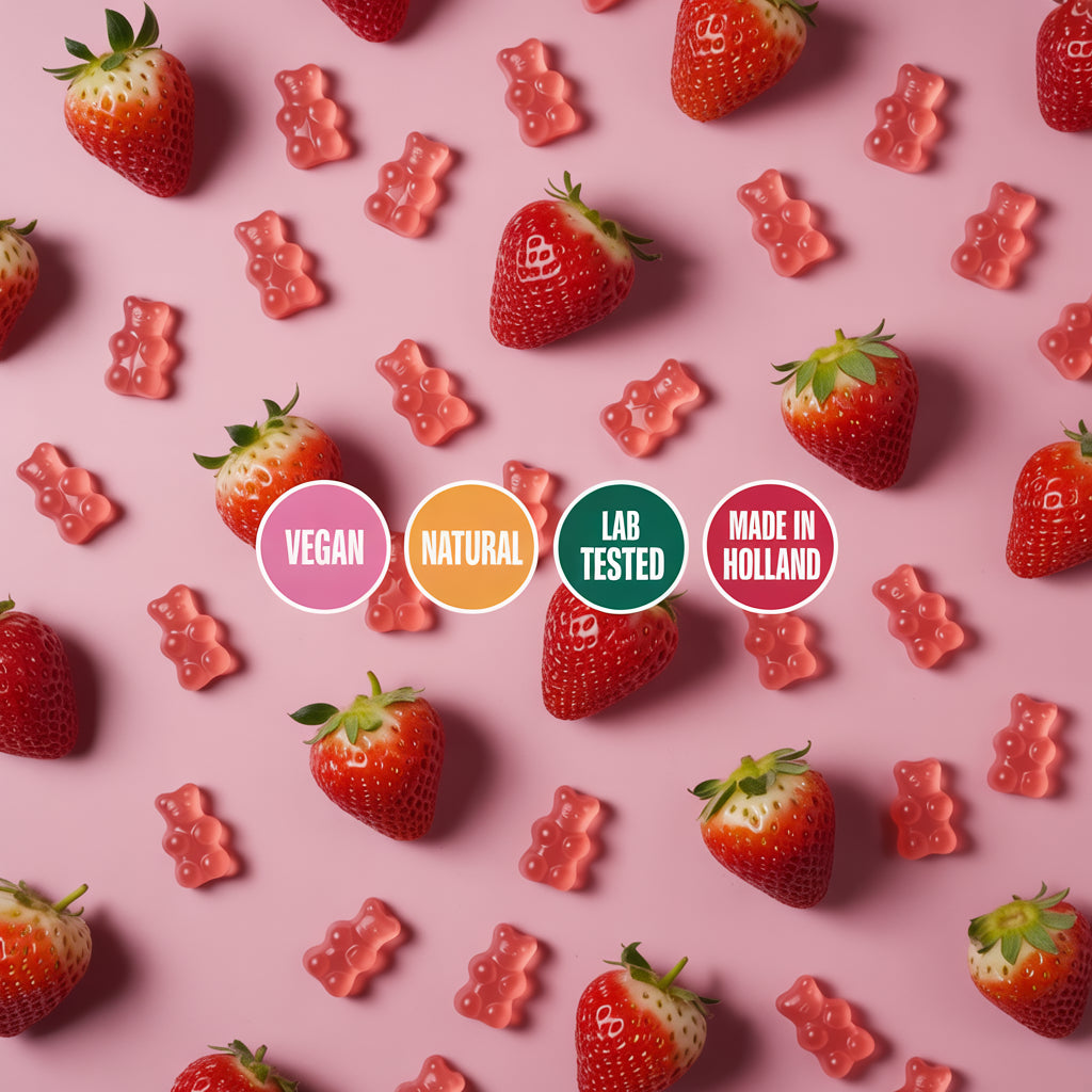Deze gummies zijn niet alleen effectief samengesteld, maar ook heerlijk en makkelijk in gebruik. Met hun frisse aardbeiensmaak wordt supplementen innemen een genietmoment in je dag.